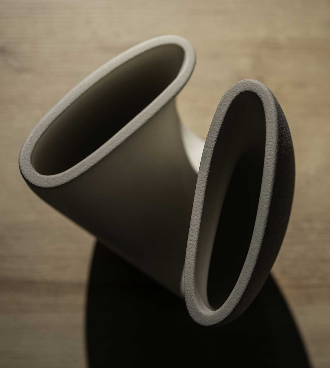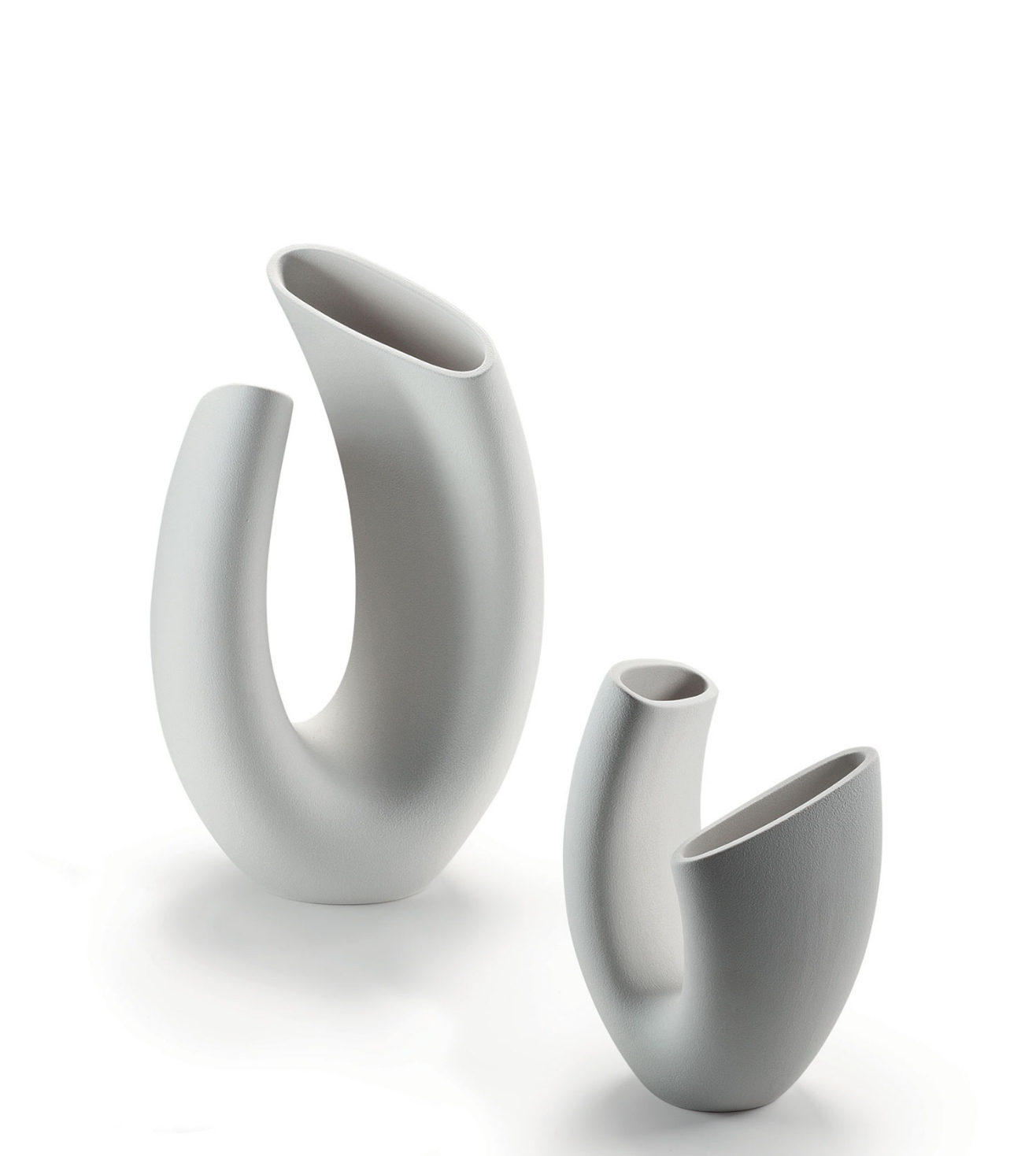 In this double-mouthed vase, the designer wanted to represent the couple in constant dialogue and mutual relationship. The immediate strength of this message and the dynamic balance of the forms have contributed to making this work an icon of Lineasette.