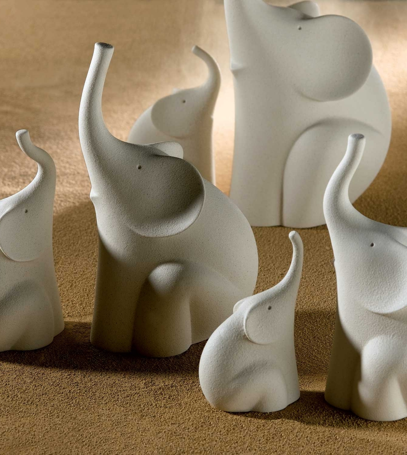 A beautiful and friendly family of six elephants, the largest mammals that live on land! Yet, despite their very thick skin, they can notice if they are touched by even just a feather. Their trunk, which can pick up food and any object, pointing upwards is a good omen.